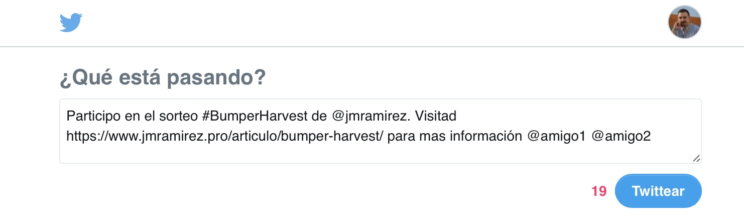 Participo en el #BumperHarvest de @jmramirez para participar visitad https://www.masqueteclas.com/articulo/bumper-harvest/ @amigo1 @amigo2