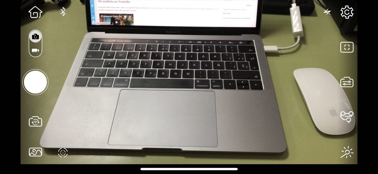 Dispone de una salida microUSB de 5V/2A a 2000mA que puede usarse como un powerbank para cargar nuestro teléfono móvil mientras grabamos. Para mi esto es una de las características que más me gustan aunque con mi iPhone X tenga que usar adaptadores para llevarla a cabo.