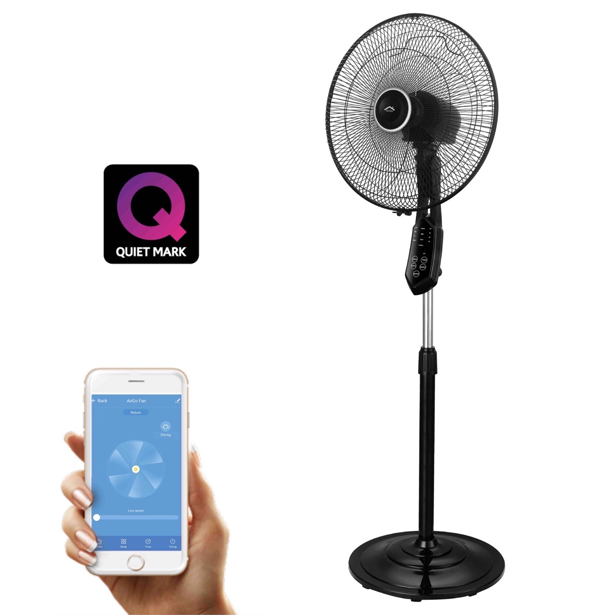 • Tecnología de reducción de ruido: AirGo es uno de los ventiladores más silenciosos del mercado y ha sido premiado con la Marca del Silencio, lo que significa que no te molestará durante la noche.