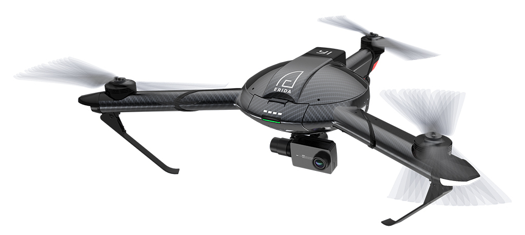 Los rotores plegables patentados del Erida permiten un diseño compacto que lo hace portátil y fácil de transportar, mientras que la aplicación móvil YI Erida que lo acompaña facilita el control del dron sin necesidad de un mando a distancia. También incluye un sensor avanzado y un sistema de radar con un escáner láser incorporado para máxima seguridad.