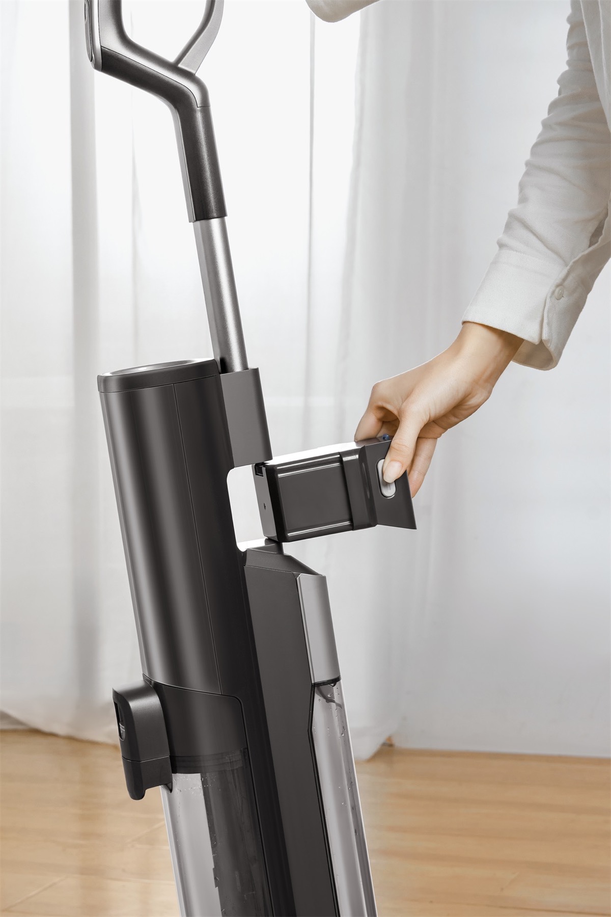 Este nuevo electrodoméstico inteligente equipa su cabezal de cepillado con un sensor de infrarrojos que puede detectar de forma inteligente tanto suciedad húmeda como seca y ajustar automáticamente la potencia de succión y el volumen de agua al nivel óptimo convirtiéndose en la comodidad absoluta frente a una aspiradora y fregona tradicionales. A través de una placa filtrante, los líquidos y los sólidos se separan automáticamente tras su aspiración, haciendo que la eliminación de residuos sea fácil e higiénica.