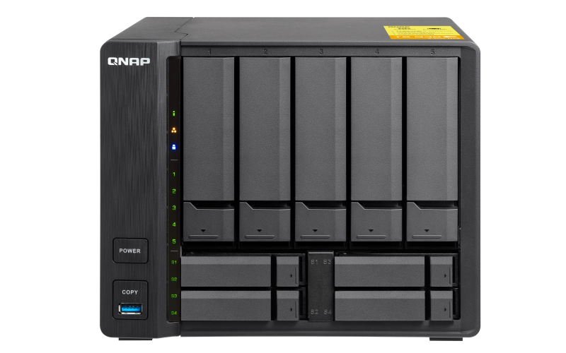 El TS-932X es un NAS económico de 10GbE diseñado para alojar cinco discos duros de 3,5 pulgadas y cuatro SSD de 2,5 pulgadas junto con puertos duales SFP+ de 10GbE.
