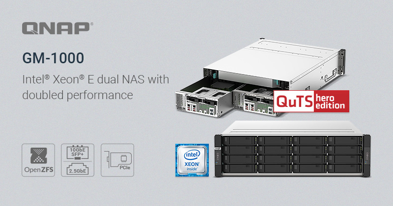 QNAP ha anunciado hoy el nuevo NAS de la serie GM-1000, un sistema basado en cajas de alta flexibilidad con dos nodos de NAS reemplazables equipados con procesadores Intel® Xeon® E. Con el sistema operativo QuTS hero basado en ZFS, el GM-1000 se centra en la integridad de los datos e incluye unas potentes funciones de compresión y deduplicación de datos en línea a nivel de bloques.