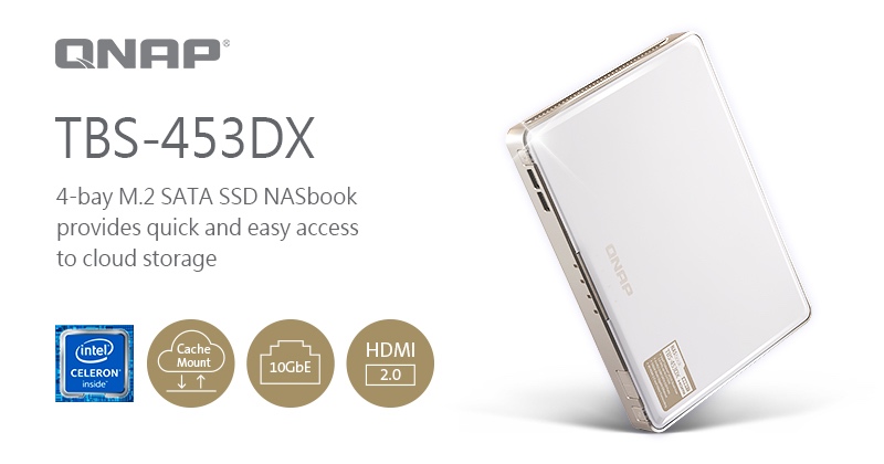 QNAP lanza el compacto y versátil NASbook TBS-453DX, diseñado para espacios de trabajo pequeños y empleados móviles. Con cuatro unidades SSD SATA M.2 para almacenamiento, el TBS-453DX también puede disponer de 20 espacios de almacenamiento en la nube y caché local, ofreciendo la posibilidad de trabajar con archivos en línea con la misma rapidez que con los archivos locales.