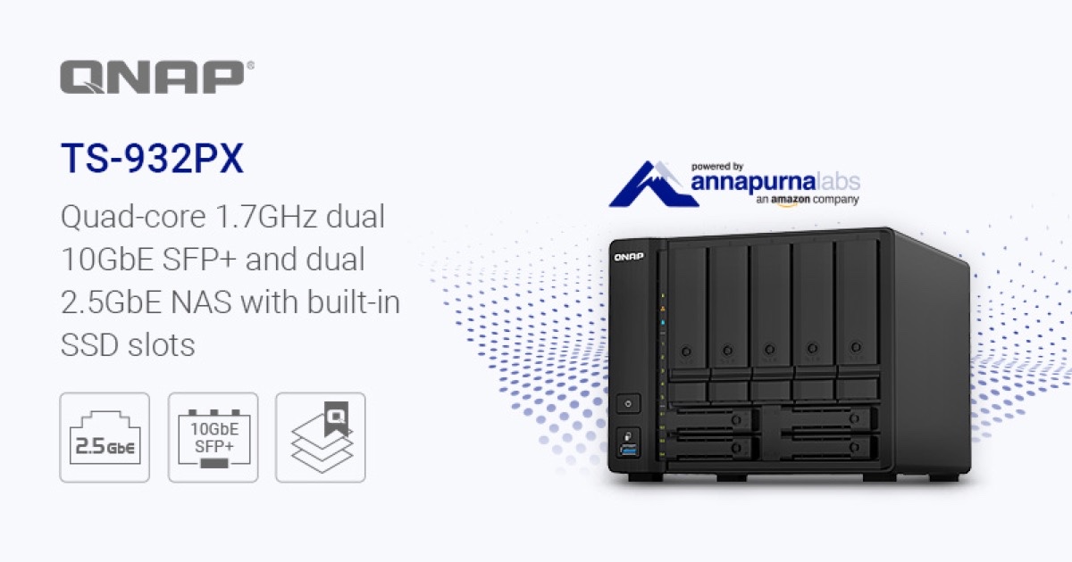 QNAP ha presentado hoy el TS-932PX, un compacto NAS de 9 bahías con dos puertos SFP+ 10GbE y RJ45 2,5GbE con cuatro bahías de unidad SATA de 2,5 pulgadas a 6Gb/s para la caché SSD dedicada. El TS-932PX admite la copia de seguridad multinube, las pasarelas de almacenamiento en la nube, el acceso remoto, la administración de fotos mediante IA y funciones adicionales para que las PYMEs puedan crear un entorno de red de alta velocidad eficiente.