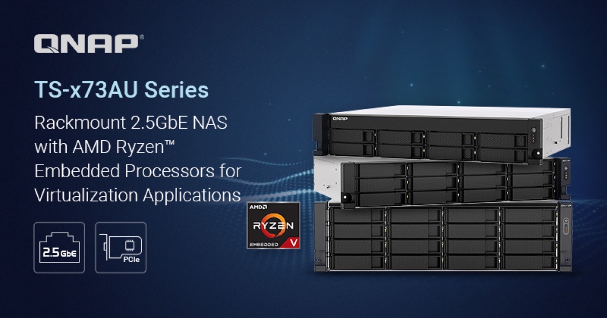QNAP ha presentado la serie NAS TS-x73AU con montaje en rack, procesadores AMD Ryzen™ Embedded V1000 serie V1500B de 4 núcleos/8 hilos a 2,2GHz de alto rendimiento y energéticamente eficientes.