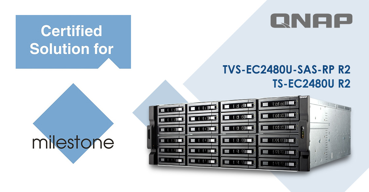 QNAP® Systems, Inc. ha anunciado hoy que el TVS-EC2480U-SAS-RP (R2) y el TS-EC2480U (R2) han obtenido la certificación para Milestone XProtect Corporate 2016 R2 y Milestone XProtect Professional 2016 R2.
