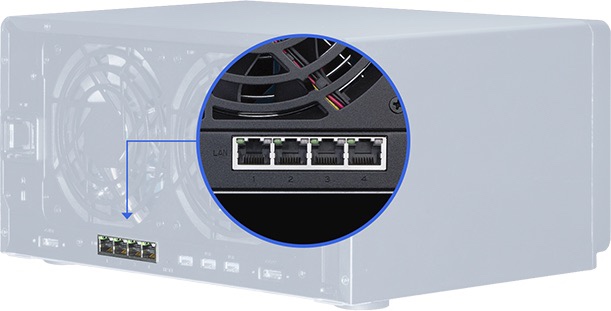 DS1819+ cuenta con cuatro puertos Gigabit Ethernet y una ranura de expansión PCIe, que proporciona una gran flexibilidad de configuración y permite responder ante las demandas de cargas de trabajo intensivas.