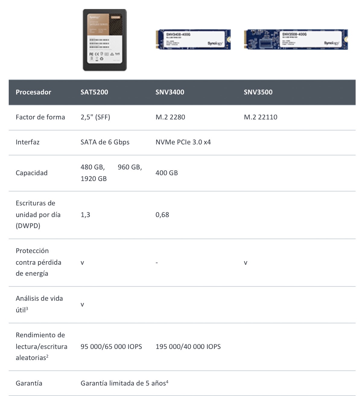 Las SSD y las tarjetas adicionales de Synology estarán disponibles próximamente a través de la red de socios y partners de Synology.