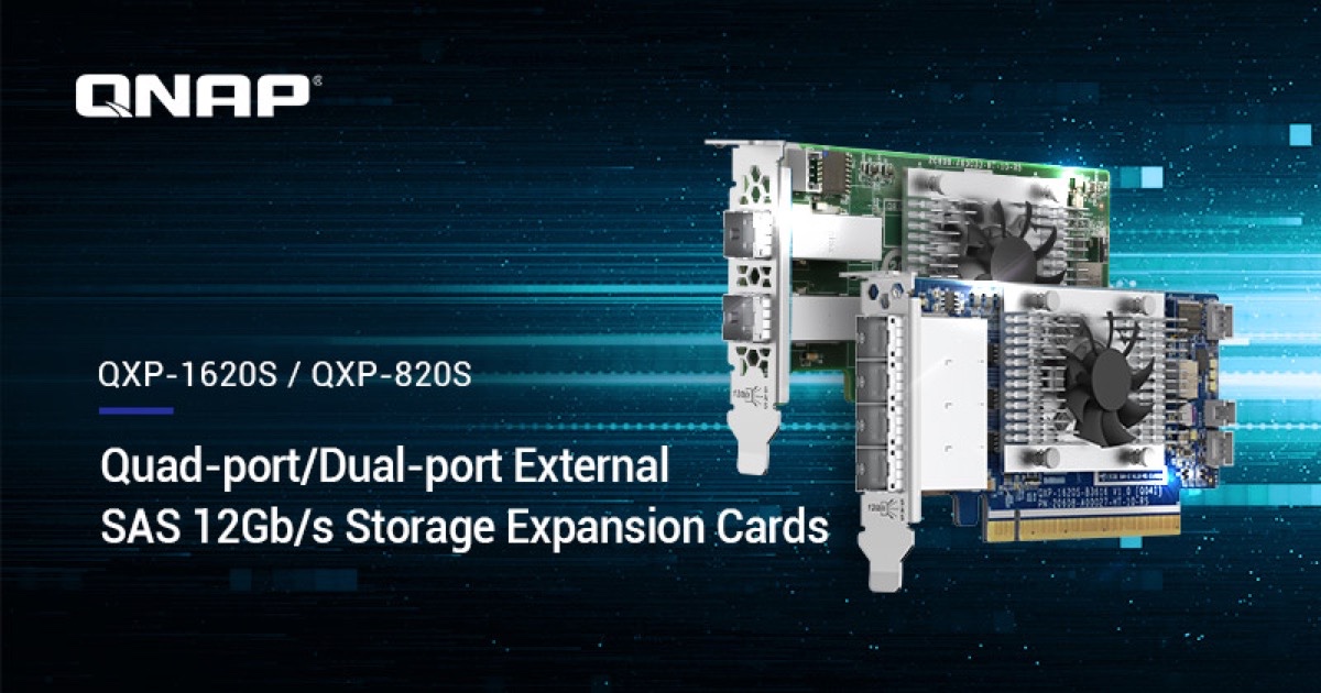 QNAP ha presentado hoy las tarjetas de expansión de almacenamiento SAS QXP-1620S y QXP-820S. Al instalar las tarjetas en un NAS de QNAP, los usuarios podrán conectar cajas de almacenamiento JBOD SAS TL y unidades de expansión REXP para ampliar la capacidad de almacenamiento total.