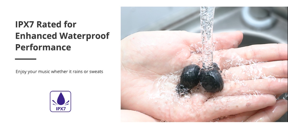 Tronsmart Onyx Free están diseñados con certificación de impermeabilidad IPX7. Significa que podemos escuchar la música incluso si nos sumergimos bajo el agua hasta 1 metro.