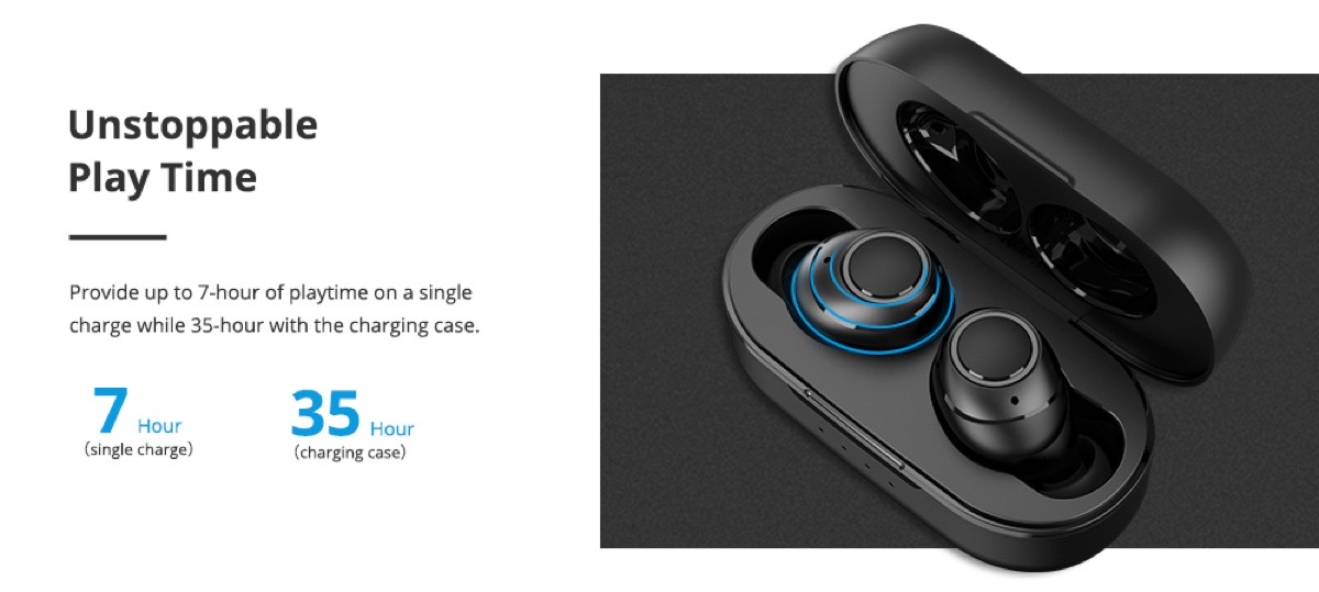 Con el chip genuino de Qualcomm®, los Tronsmart Onyx Free son compatibles con el formato de audio aptX ™ sin pérdidas. Además, el tiempo máximo de reproducción de hasta 35 horas nos permite disfrutar de la música sin interrupciones.