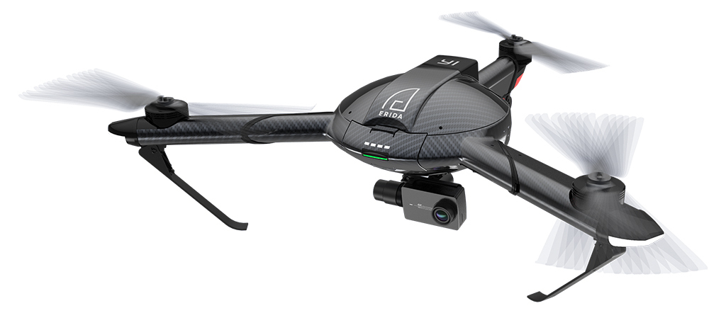 Debido a la naturaleza duradera y ligera de la estructura de carbono de Erida y de su diseño aerodinámico, el primer dron de consumo de YI es excepcionalmente rápido y ágil, alcanzando velocidades de hasta 120 km/h y volando hasta 40 minutos en las pruebas iniciales. Otros aspectos destacados del producto son: